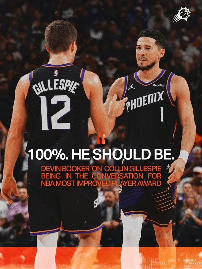 虎扑03月05日讯 今日,太阳官方更新动态,晒出布克对吉莱斯皮的评价: